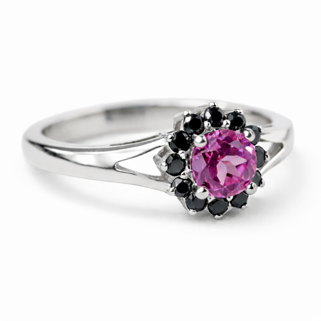 Rubin – symbol pasji i siły – w otoczeniu czarnych brylantów tworzy kompozycję pełną tajemnicy i luksusu. Ten pierścionek z kolekcji Diamond Sky to propozycja dla kobiet, które kochają odważną elegancję i biżuterię z charakterem.