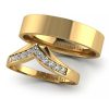 Komplet pięknych, nowoczesnych obrączek ślubnych z żółtego złota, próby 585.