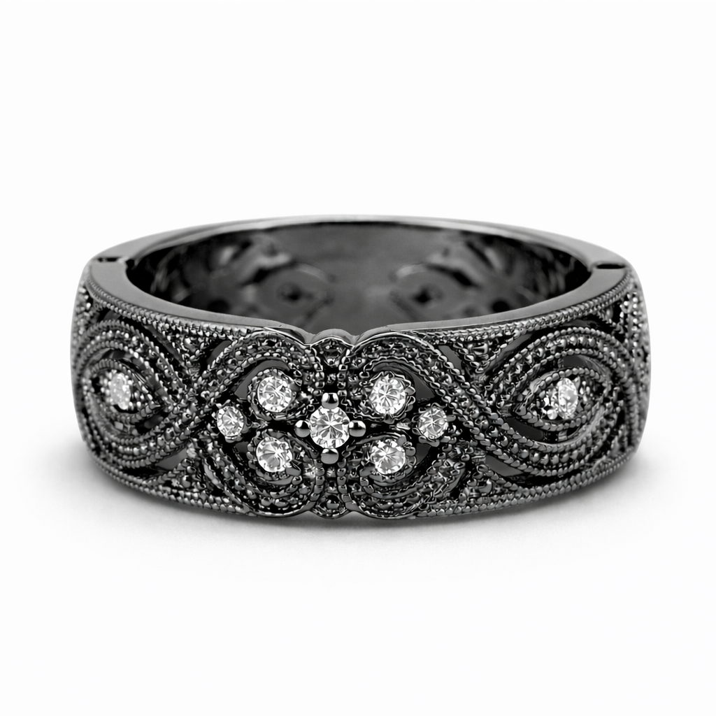 Blask serca – Obrączka – pierścionek z czarnego złota złota, diamenty,