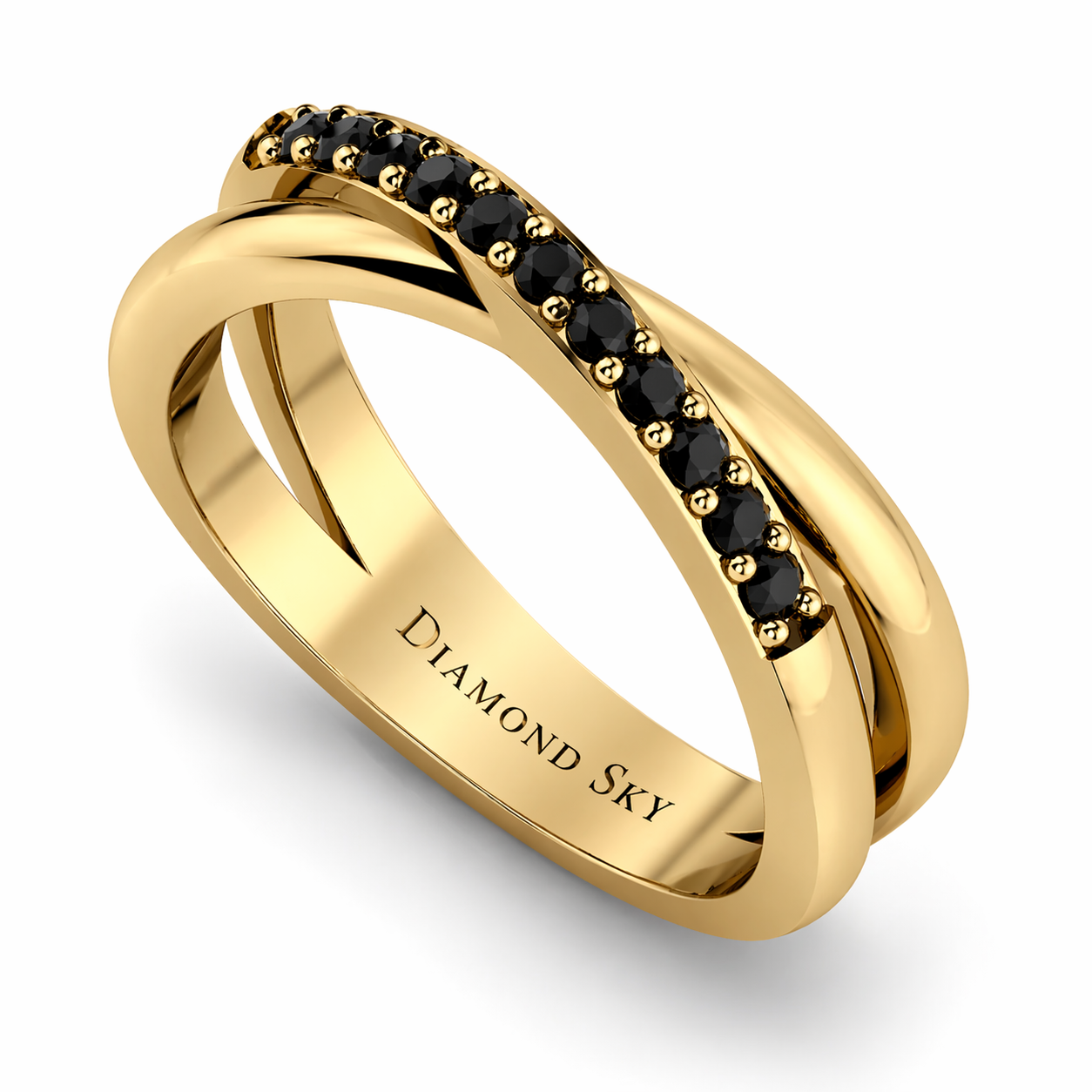 Diamentowa Fala – obrączka w żółtym złocie z czarnymi diamentami