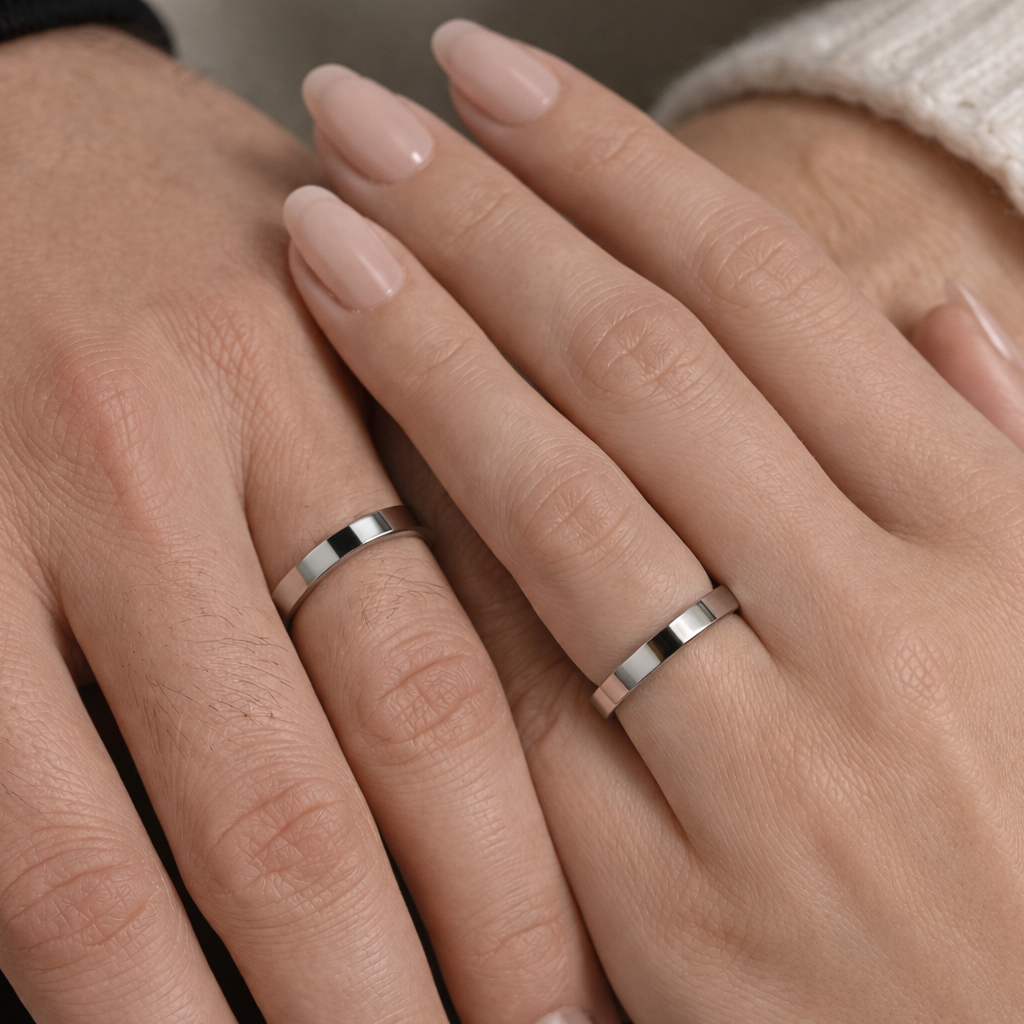 Prezentujemy komplet klasycznych płaskich obrączek ślubnych o szerokości 3 mm.