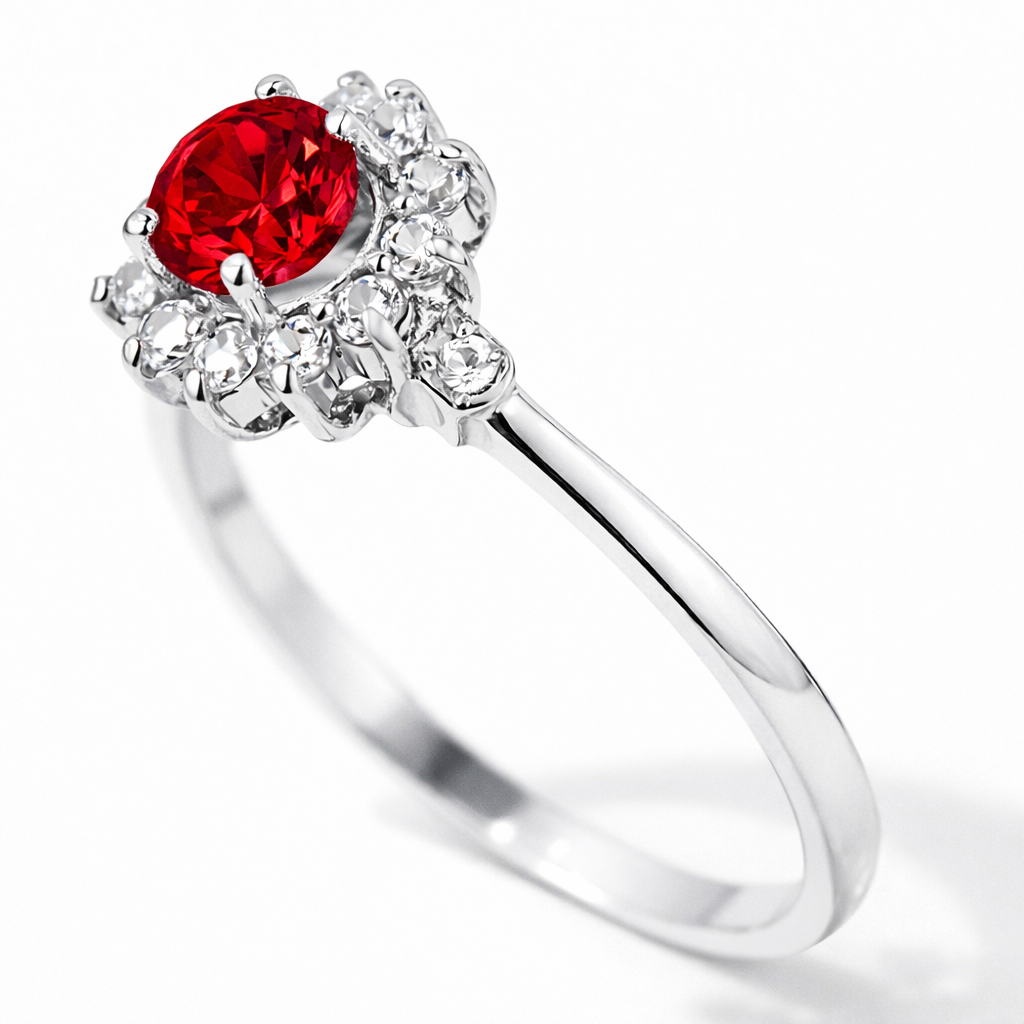 Centralny rubin stanowi wyrazisty punkt kompozycji, przyciągając spojrzenie swoim blaskiem.