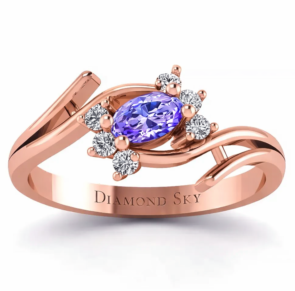 Księżycowa łza – Pierścionek zaręczynowy, tanzanit, różowe złoto, diamenty Si1/H