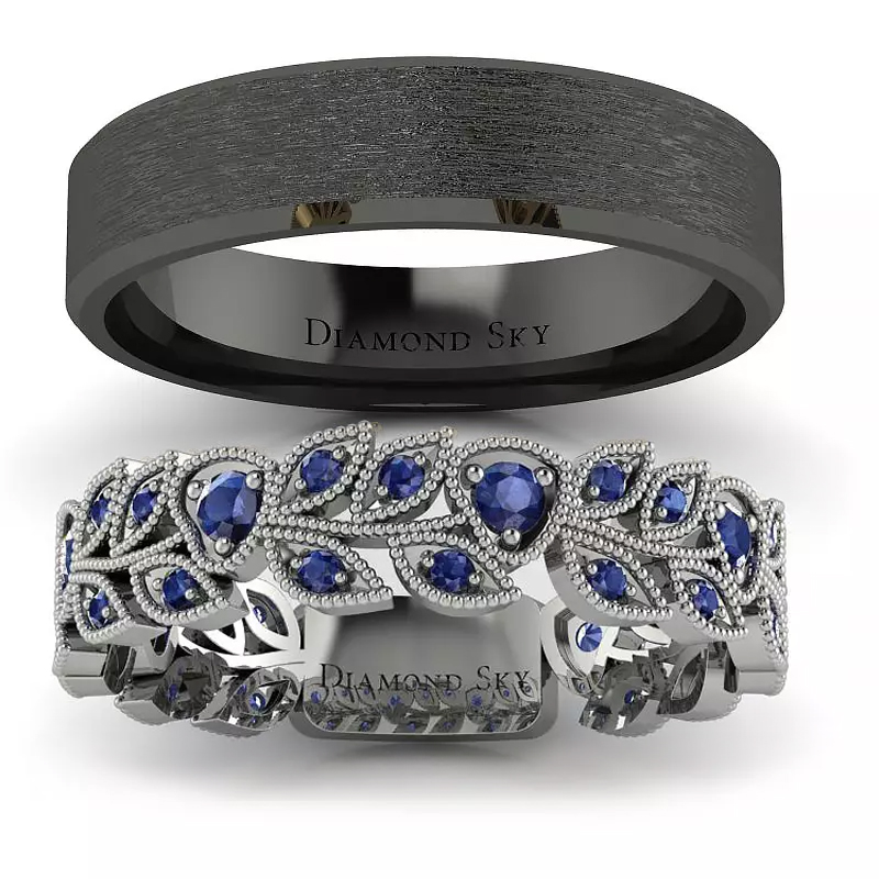 Naturalne piękno – Obrączki ślubne z czarnego i białego złota z szafirami