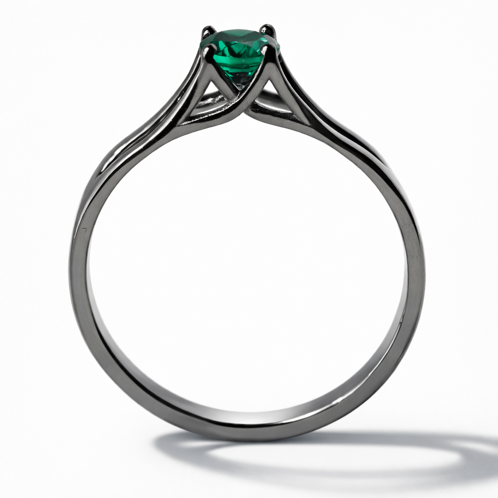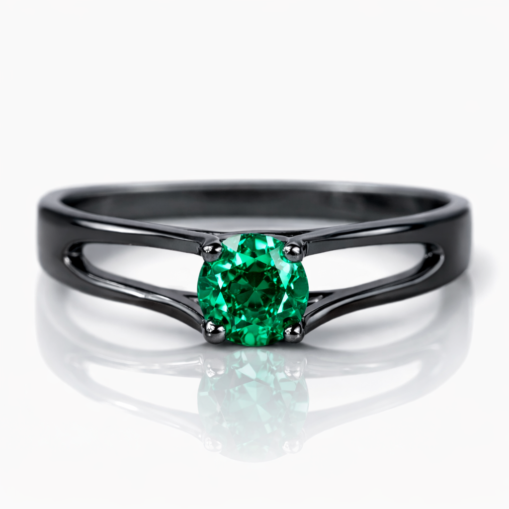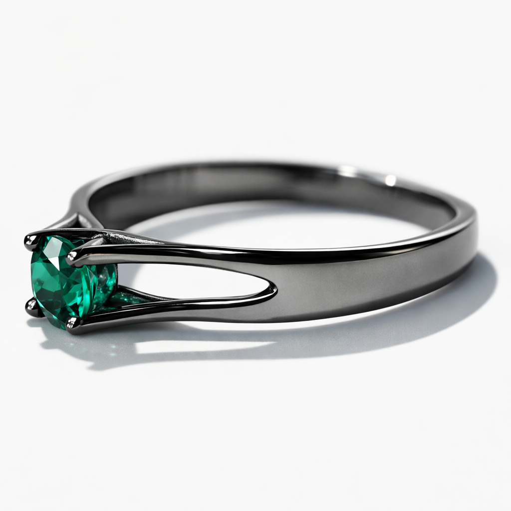 Nowoczesna linia – Pierścionek zaręczynowy z czarnego złota, szmaragd