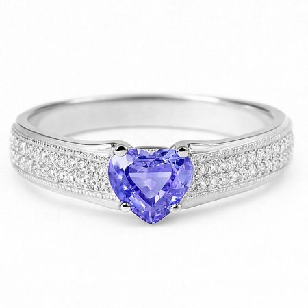 Kamień centralny: 1 tanzanit o szlifie w kształcie serca o masie ~0.70 ct