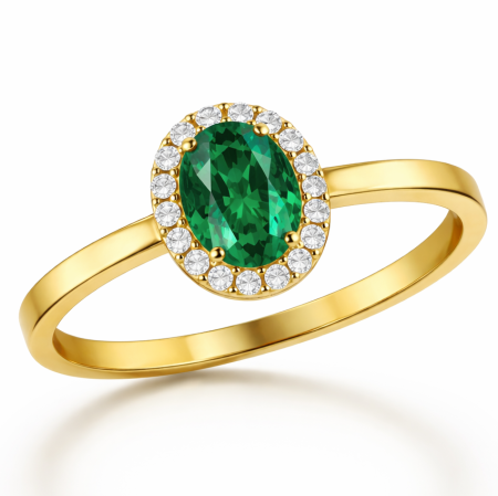Aureola szmaragdu – Pierścionek zaręczynowy z żółtego złota ze szmaragdem i diamentami 19900 zł