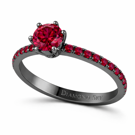 Lśniąca linia – Pierścionek zaręczynowy z czarnego złota z rubinami 10800 zł