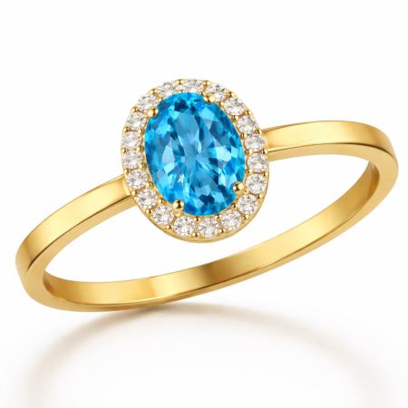 Aureola topazu – Pierścionek zaręczynowy z żółtego złota z topazem i diamentami 9900 zł