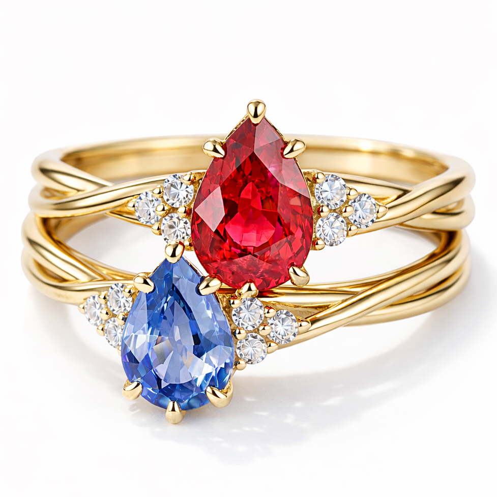 Kamień centralny: 1 szafir o szlifie łezka o masie ~0.75 ct
