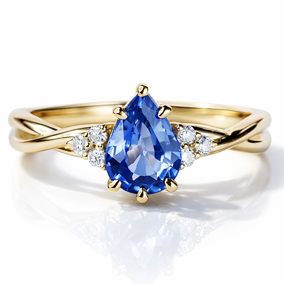 Centralnym elementem jest olśniewający szafir o szlifie łezka.