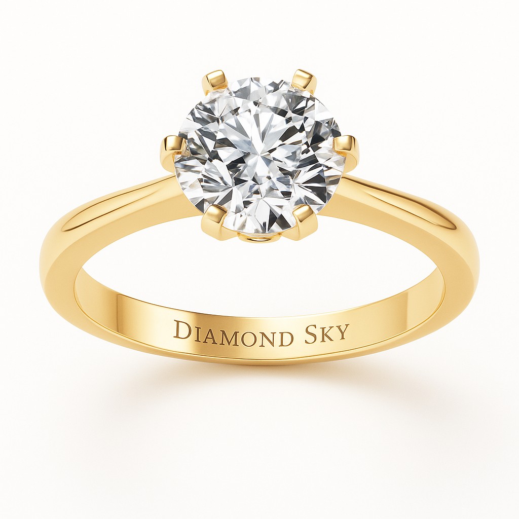 Szlachetny urok – Klasyczny pierścionek z żółtego złota z diamentem 1.00ct