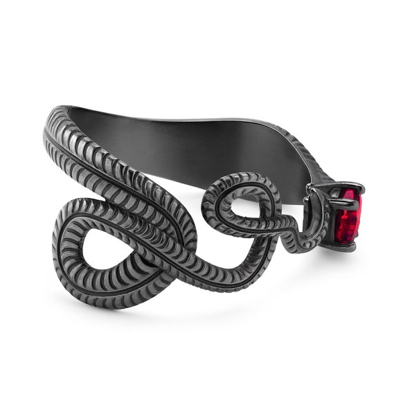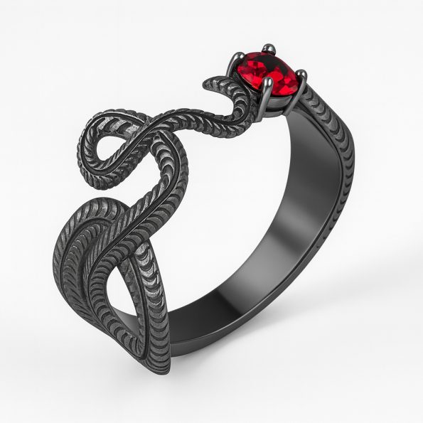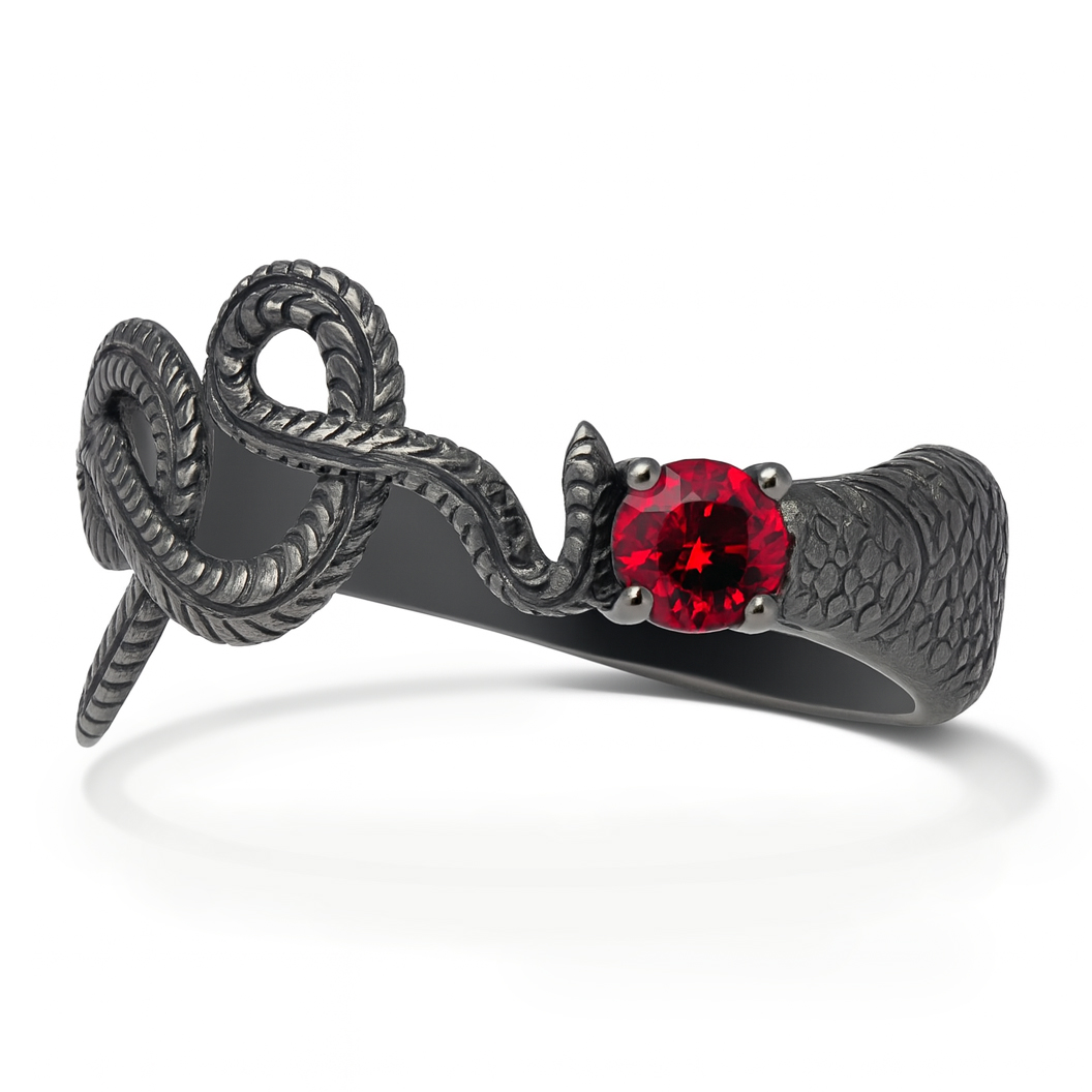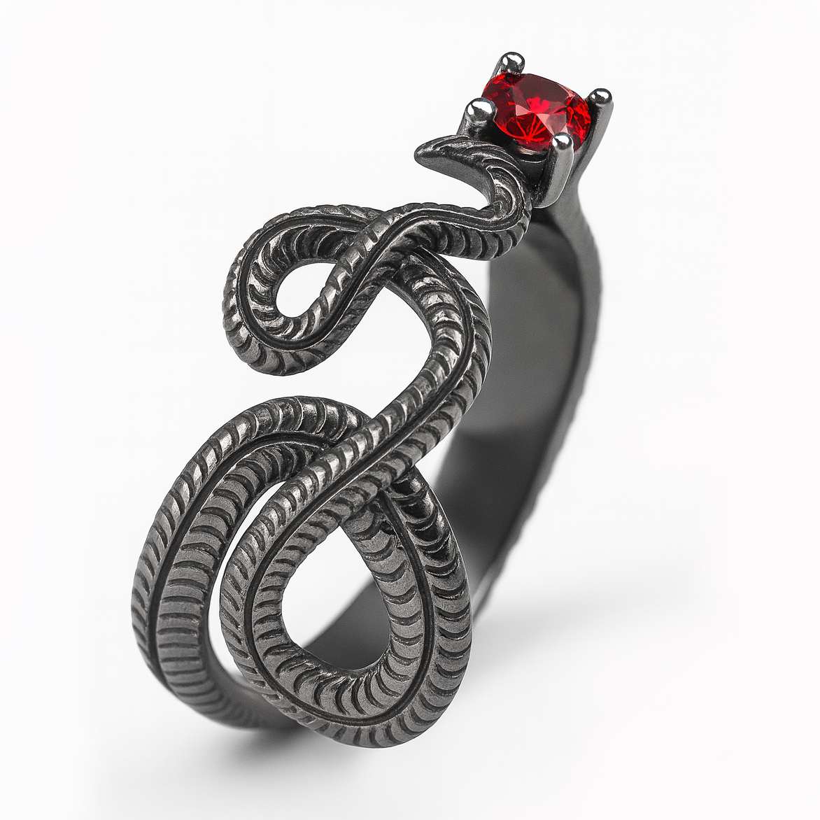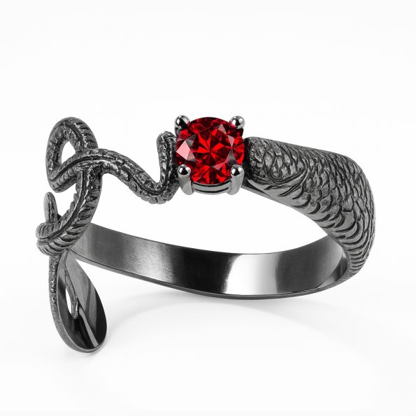 Wąż – Pierścionek zaręczynowy z czarnego złota z rubinem